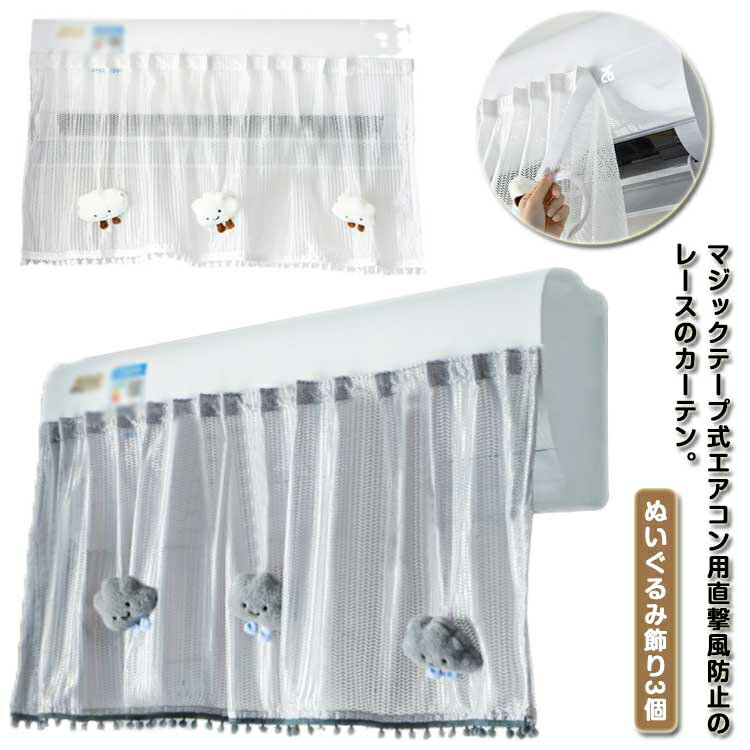 和風 送料無料 レース 直撃風防止 スリム 冷房対策 マジックテープ付 エアコン風よけ 風よけ 布製 カーテン 風よけ 面ファスナー 室内機カバー 目隠し 透け感 簡単取付 空気出口