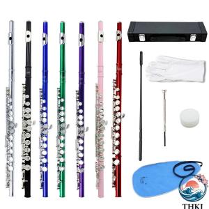 初心者Cフルート、キャリングケース、クリーニングキット、スタンド、子供向けの手袋、シルバーゴールド、 羊のケーシングクッション、手磨き、明るいトーンを備