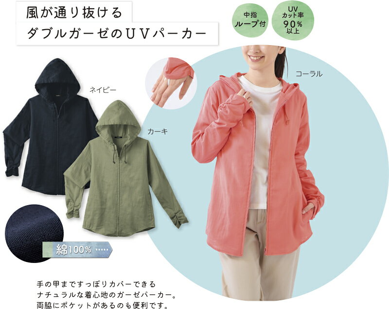 シャツ風ガーゼUVパーカー