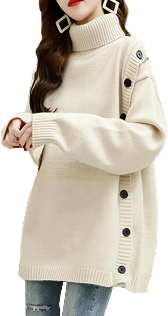 セーター レディース ニットトップス ボタン装飾 ファッション カジュアル 長袖 ハイネック 可愛い 伸縮性 着痩せ ゆったり 通勤 着心地 韓国 着回し 柔らかい お出かけ 春 秋 冬