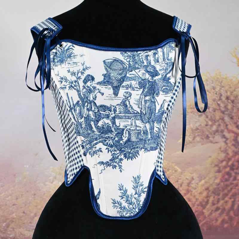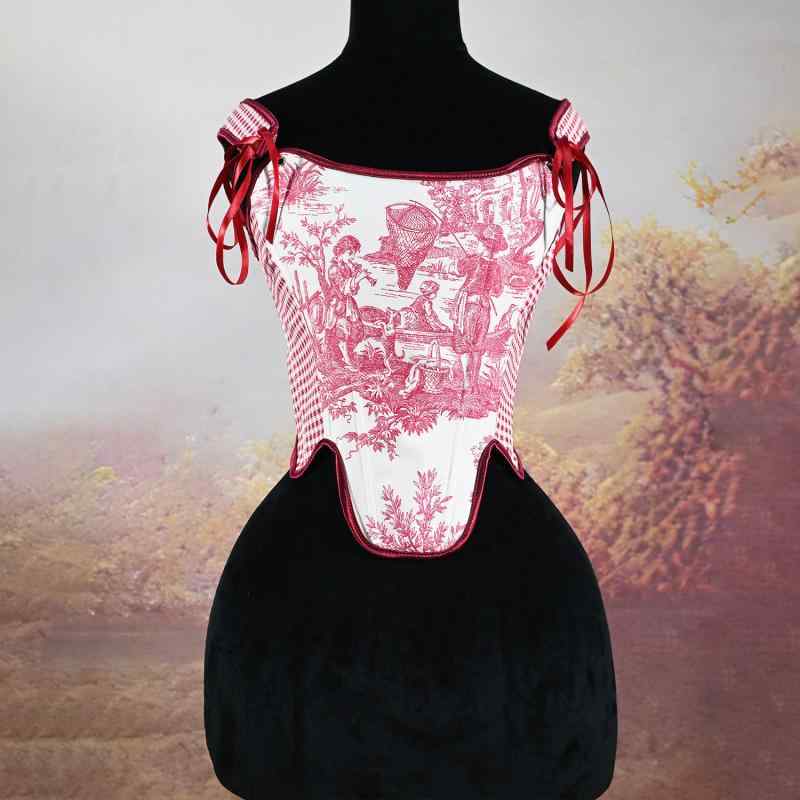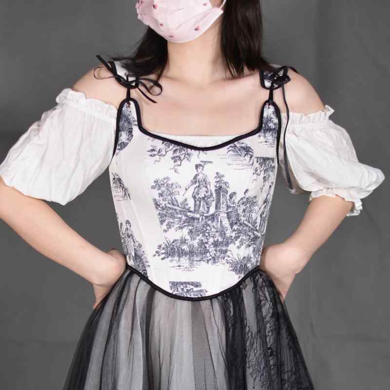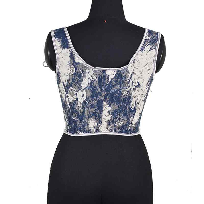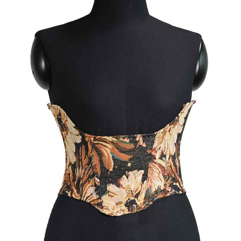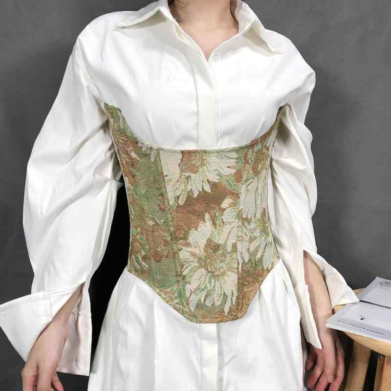 アート柄 色織り フロントタイ コルセット フィッシュボーン ウエストシェイプ バストアップ 補正 トップス