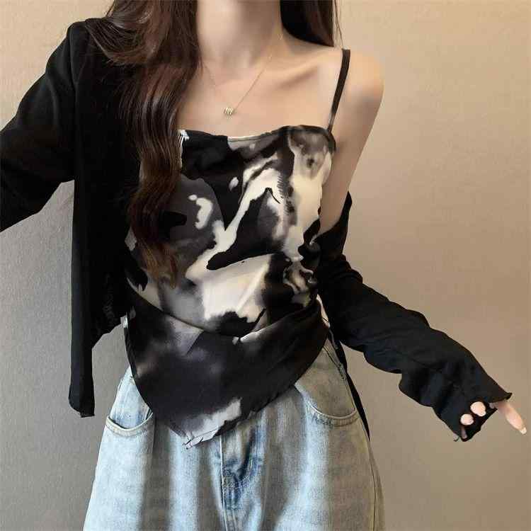子用な サスペンダーと ショーツ ホームウェア 女性用 美しい バック 水墨 画 ツーピース スーツ