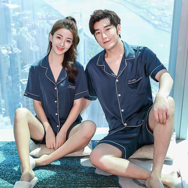 パジャマ レディース 上下 ヤル シームレス カップル パジャマ メンズ 夏 細 糸 レディース 半袖 ホーム 服 スーツ クールカジュアル