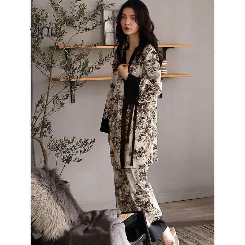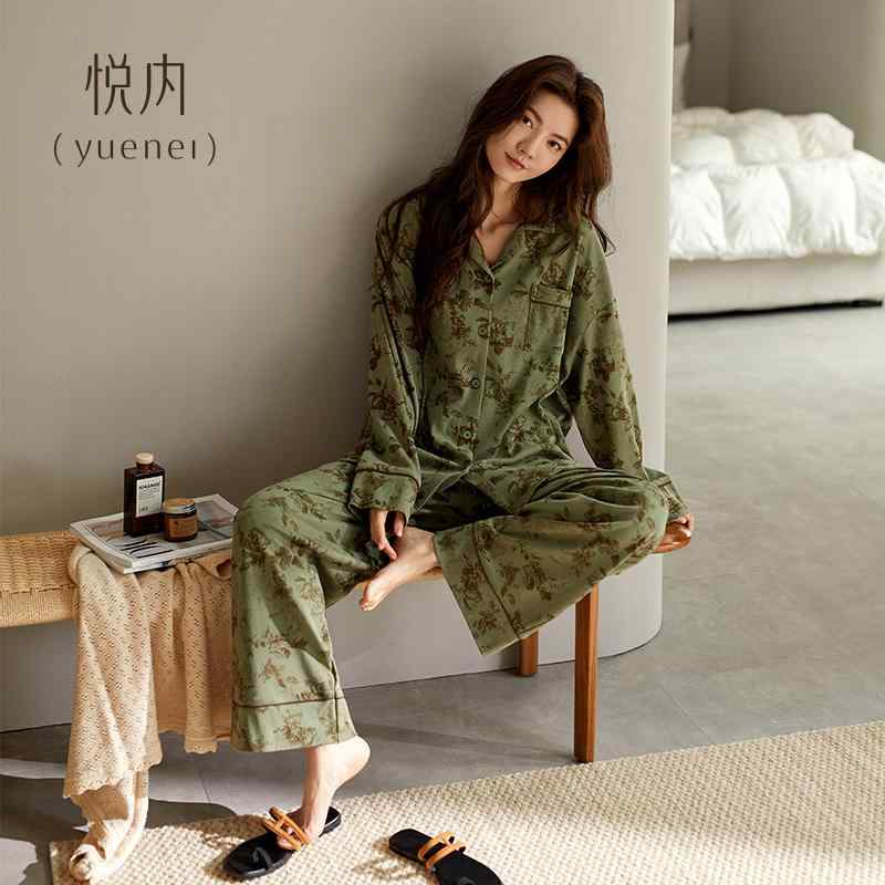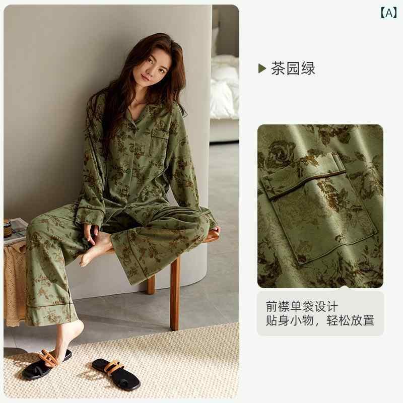 ルームウェア 肌に優しい 暖かい パジャマ レディース 上下 Yue Nei パジャマ レディース 春秋 スタイル 秋 綿 長袖 ロング パンツ 家 着 軽い 高級 水墨 画 セット