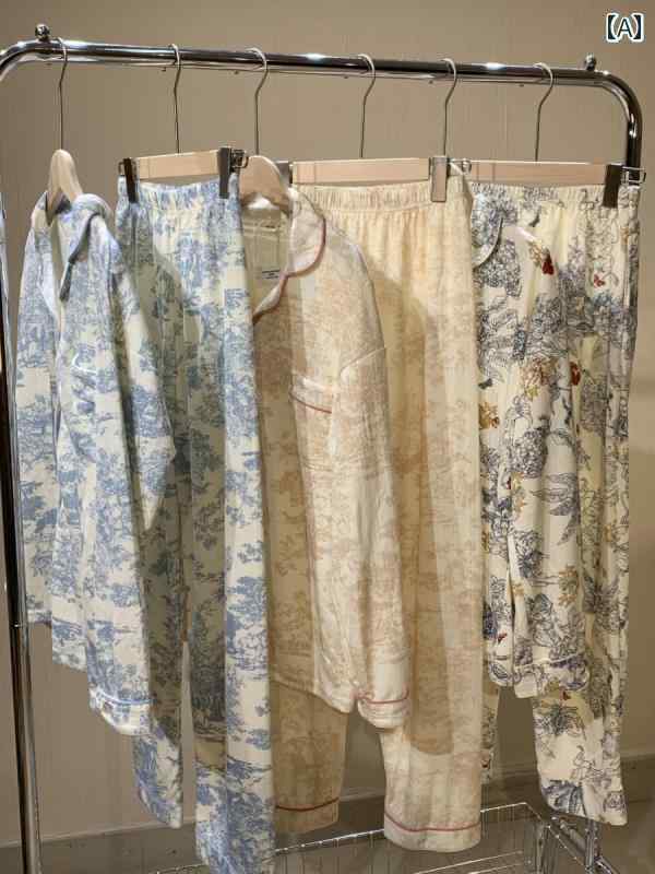 パジャマ レディース 上下 Yue Nei パジャマ レディース 春秋 スタイル 秋 綿 長袖 ロング パンツ 家 着 軽い 高級 水墨 画 セット