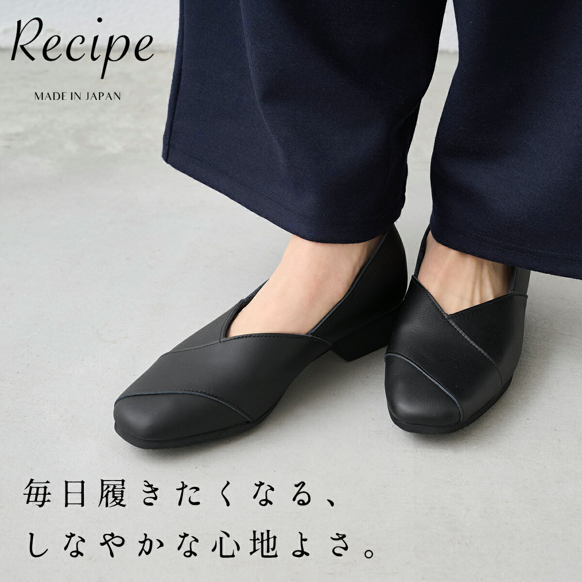 [ スリッポン レディース レザー ] 日本製 本革スリッポン しなやかで 柔らかい 本革の Lカット スリッポン Recipe RP-204 40代 50代 60代 フォーマル 靴 痛くない パンプス ぺたんこ靴 レシピ 外反母趾 モートン 2E レシピ靴
