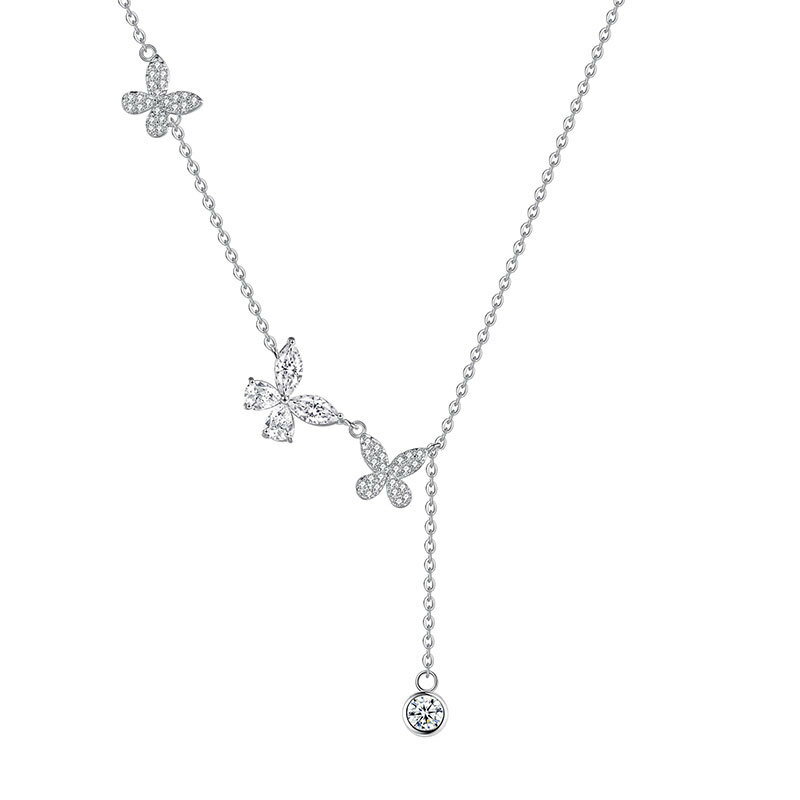 ミニバタフライ 蝶 長さ調整Y字ネックレス、レディース シンプル 可愛い Silver925 シルバー CZジルコニア 小さな蝶 ショートネックレス バタフライネックレス