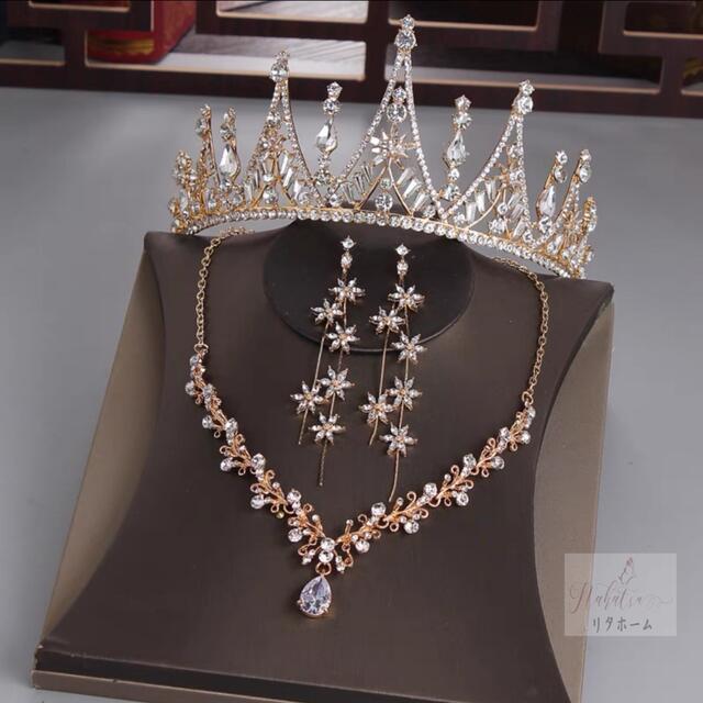 A004930ウェディング 花嫁3点セット .アクセサリー ティアラ+イヤリング+ネックレス