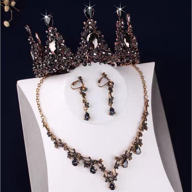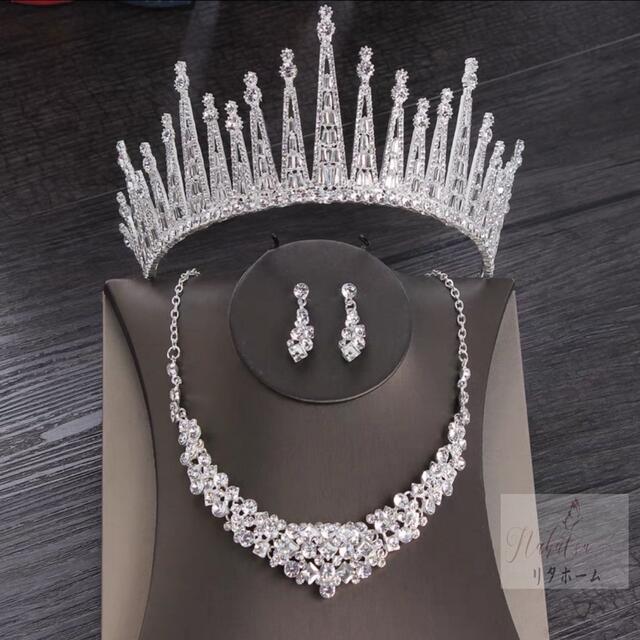 A004924ウェディング 花嫁3点セット .アクセサリー ティアラ+イヤリング+ネックレス