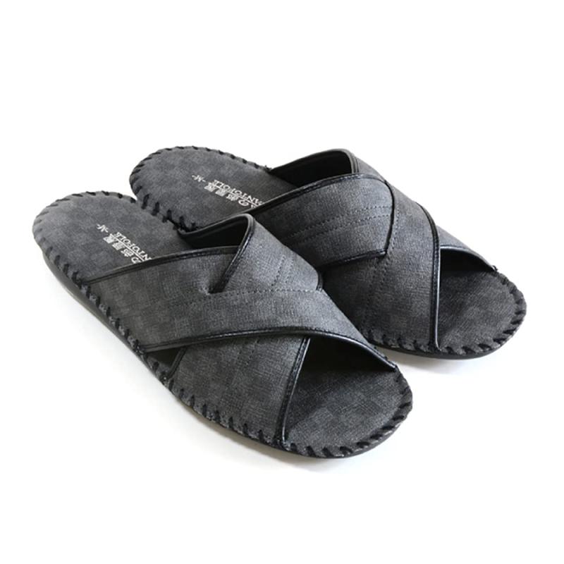 (Pansy) パンジー 紳士用 室内履きサンダル メンズ 男性用 コンフォート オフィスサンダル 前あき クロスタイプ おしゃれ 軽量 滑り止め 黒 仕事用 事務用 来客用 ビジネス M L LL 高級ルームシ
