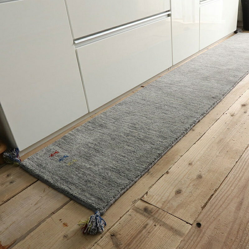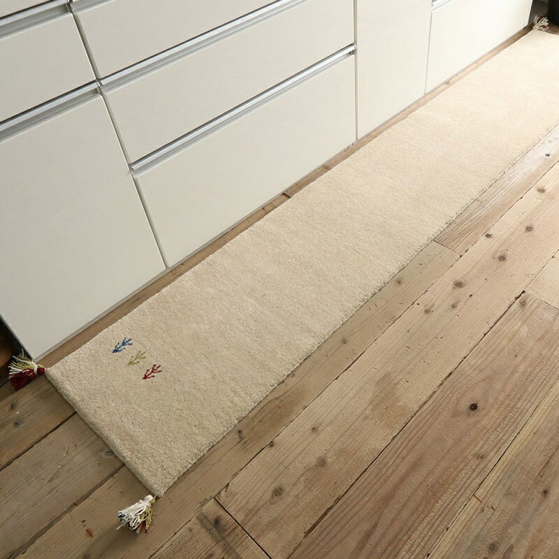 ソヨカ キッチンマット 45x120cm アイボリー マット 天然羊毛インド製手織りギャッベ オールシーズン おしゃれ ホットカーペット 床暖房 高級感