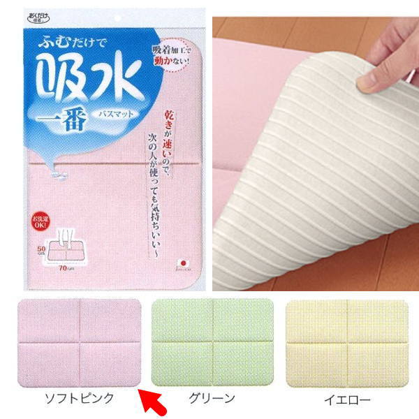 サンコー おくだけ吸着 吸水一番バスマット 50×70cm 厚み11mm ソフトピンク YO27