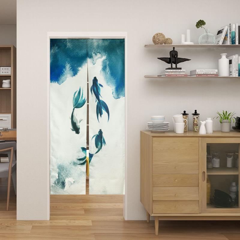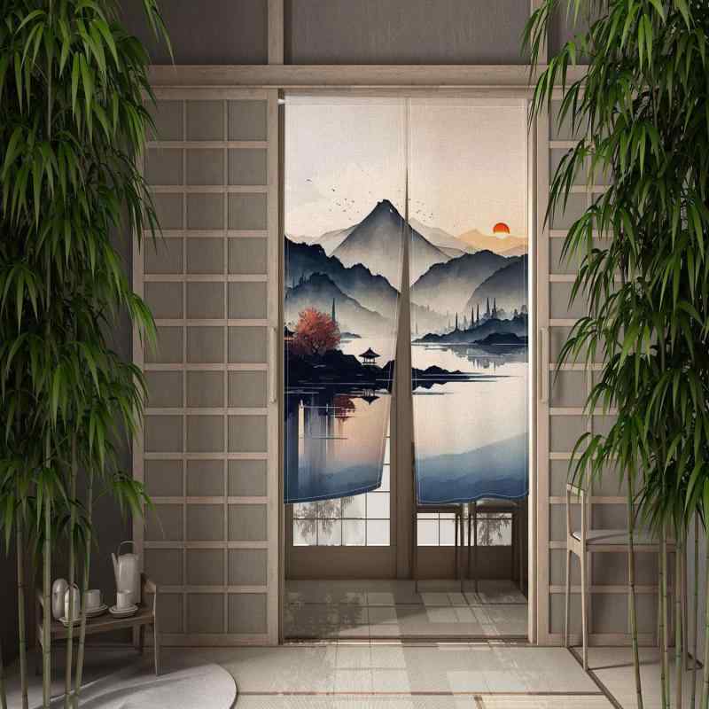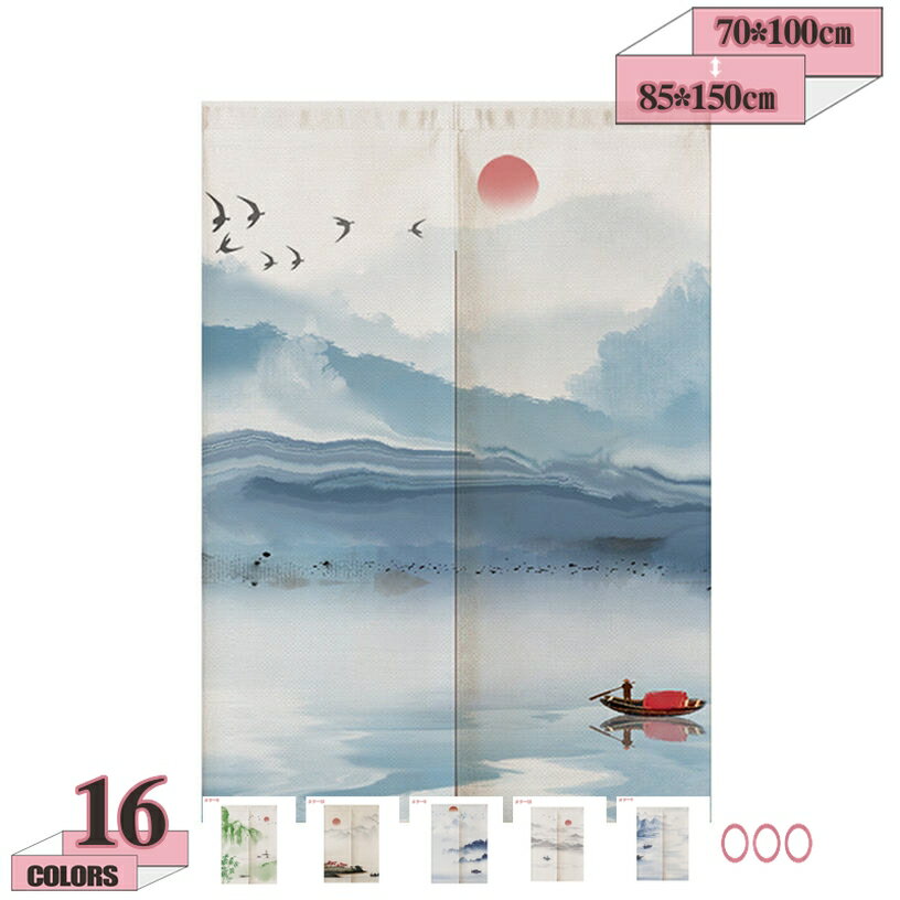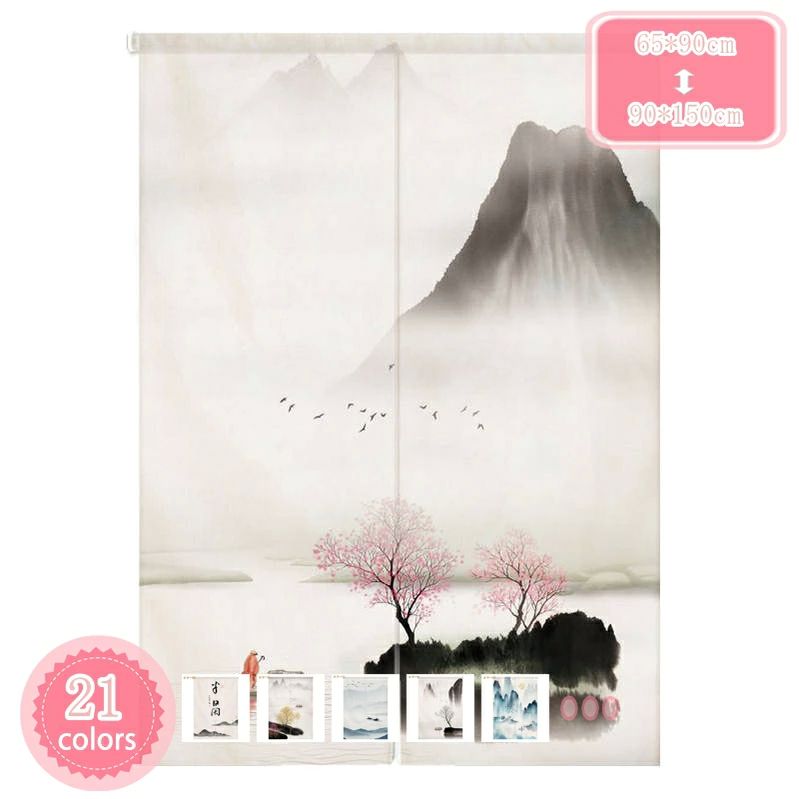 山水画 抽象柄 ポリエステル製 おしゃれ 玄関 リビング キッチン 寝室用 間仕切り 目隠し 冷暖房対策 ドアカーテン 和風 和モダン インテリア 風水
