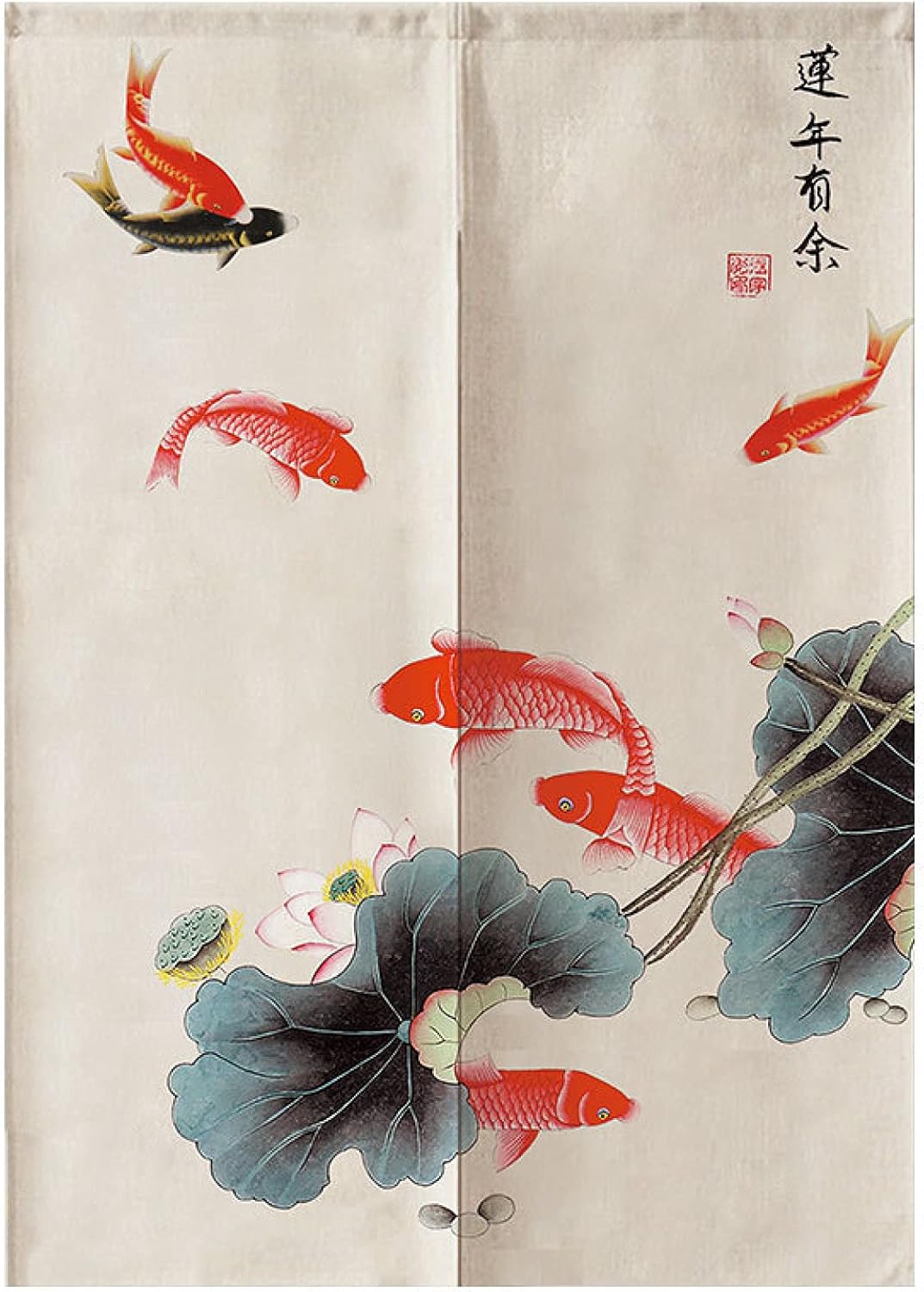 れん 暖簾 遮光暖簾 断熱カーテン 両開き 中国風 鯉柄