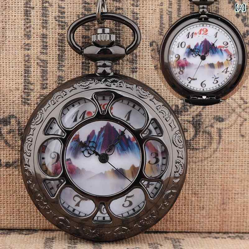 海中時計 時計 オシャレ 風景 画 水墨 中国 クラシック フリップカバー レトロ クォーツ 懐中時計 壁掛け 時計 ネックレス