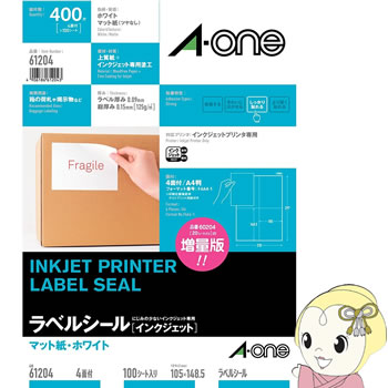 エーワン 61204 ラベルシール (インクジェット) マット紙(A4判) 100枚入