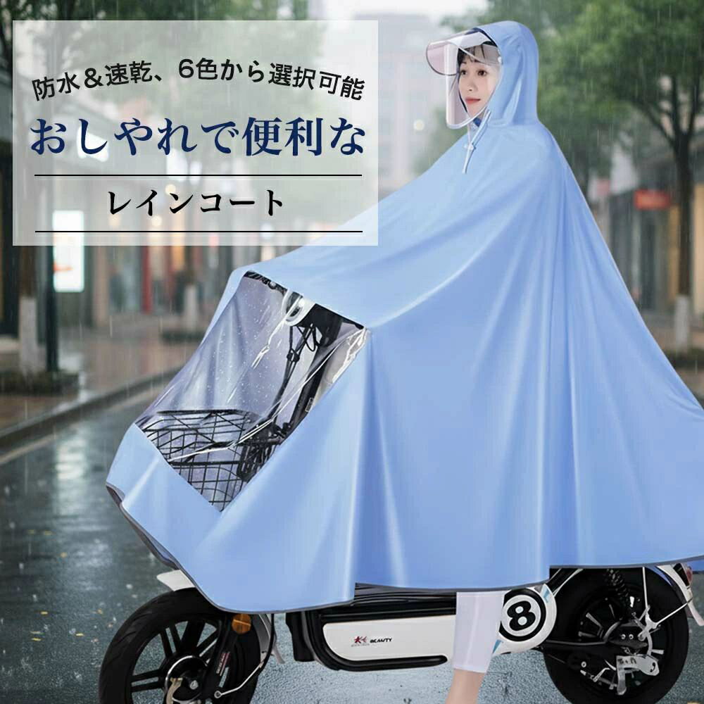 自転車 レインコート レインポンチョ 防水レインウェア レディース メンズ ナノ防水 豪雨対応 ロング丈 大きいサイズ 4XL フルオープン 足元カバー かごカバー ダブルバイザー 透明バイザー 速乾 軽量 通勤 梅雨対策 台風対策