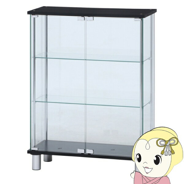 ガラスコレクションボックス ブラック 背面ミラー 幅42.5cm 奥行36.5cm 高さ45cm モダン コレクションケース フィギュア アクセサリー【/srm】