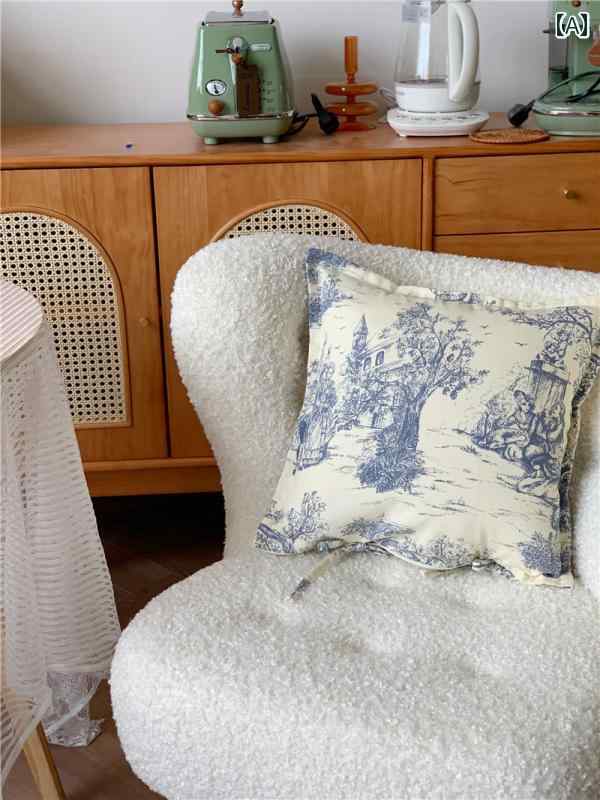クッション カバー おしゃれ インテリア 枕 フレンチ レトロ ブルー プリント