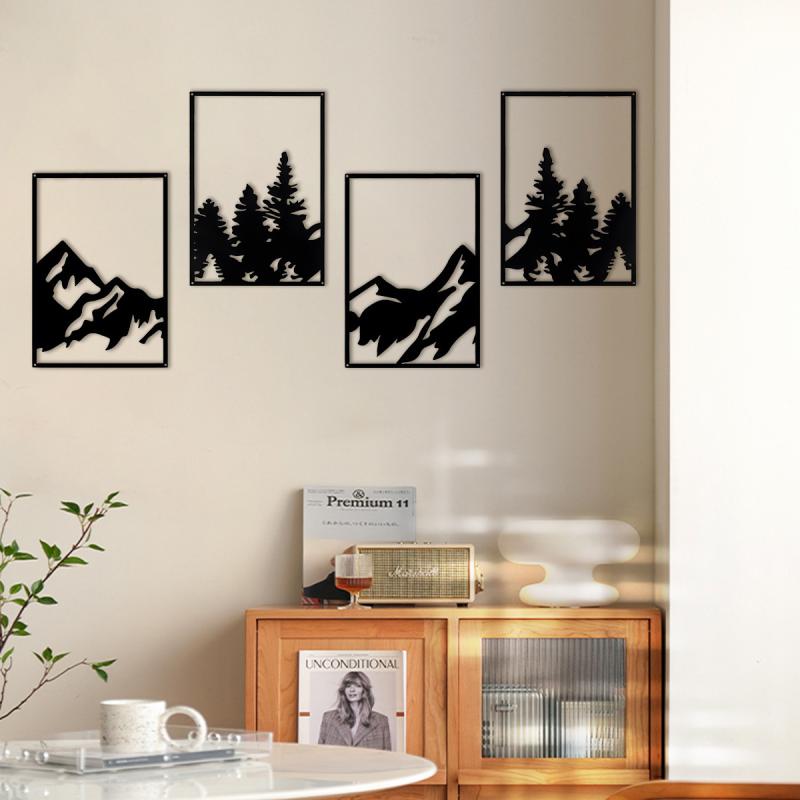 風景画 四連作 リビング 玄関 オフィス 店舗用 インテリア おしゃれ 高級感 ブラック(x2)