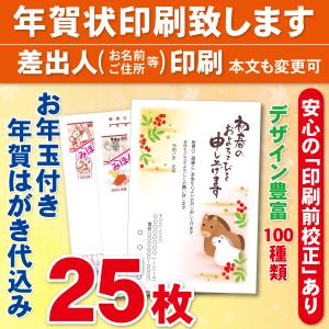 お年玉付き年賀はがき25枚(官製ハガキ) 年賀状印刷致します 差出人印刷 25枚3950円