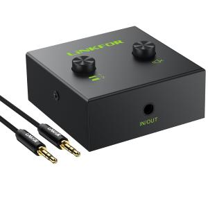 LiNKFOR 2ポート オーディオスイッチャー 2入力1出力/1入力2出力 3.5mm ヘッドフォン スイッチ スピーカー セレクター 切替器 スプ