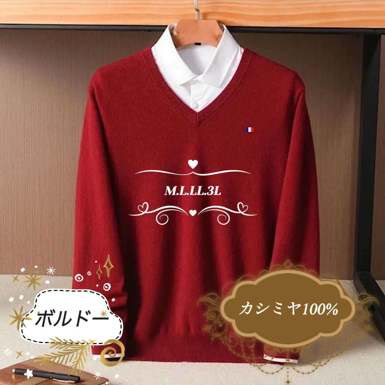 カシミヤ100% メンズ Vネック セーター ボルドー カシミア 選べるサイズ M L LL 3L