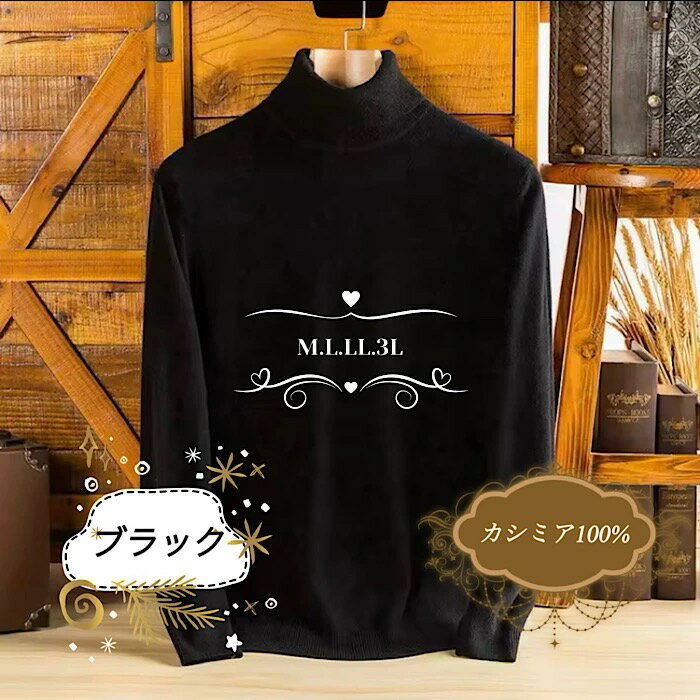 カシミヤ100% ミンク加工 メンズ タートルネック ニットセーター ブラック 肌触りのいいふわふわミンク加工 カシミア 選べるサイズ M L LL 3L