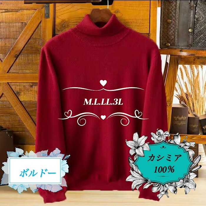 カシミヤ100% メンズ タートルネック ニットセーター ボルドー カシミア 選べるサイズ M L LL 3L