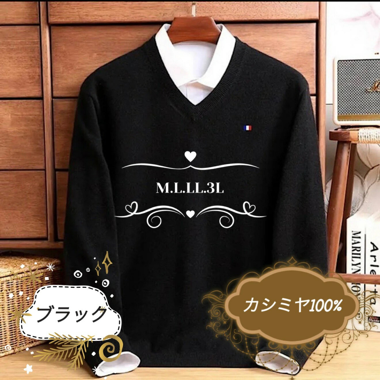 カシミヤ100% メンズ Vネック セーター ブラック カシミア 選べるサイズ M L LL 3L