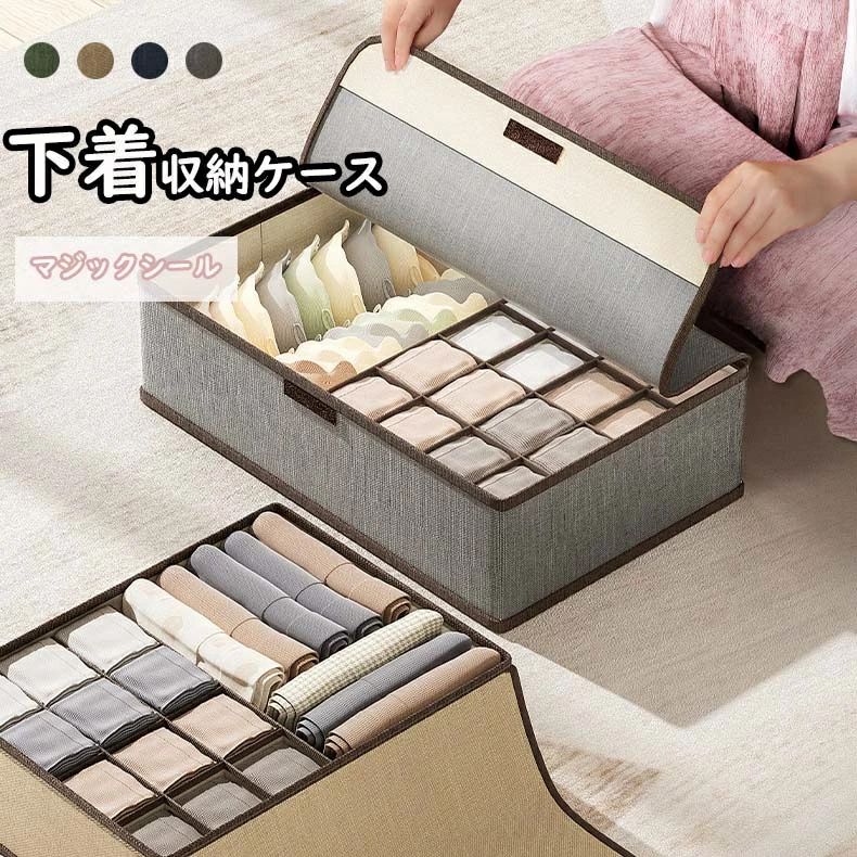 仕切りケース 蓋付き 収納ボックス 布 折りたたみ 下着収納ケース ランジェリー収納ボックス 引出し収納 衣類収納 小物 アンダーウェア 靴下 ハンカチ ブラジャー ネクタイ 仕切りボックス 衣類ケース おしゃれ 収納ケース コンパクト プレゼント 送料無料
