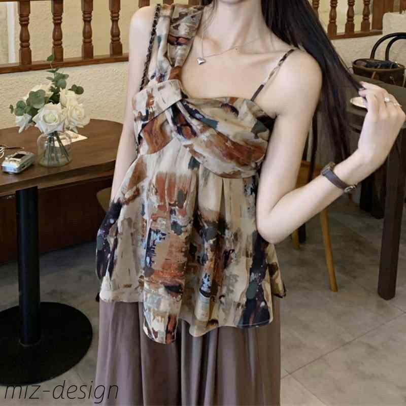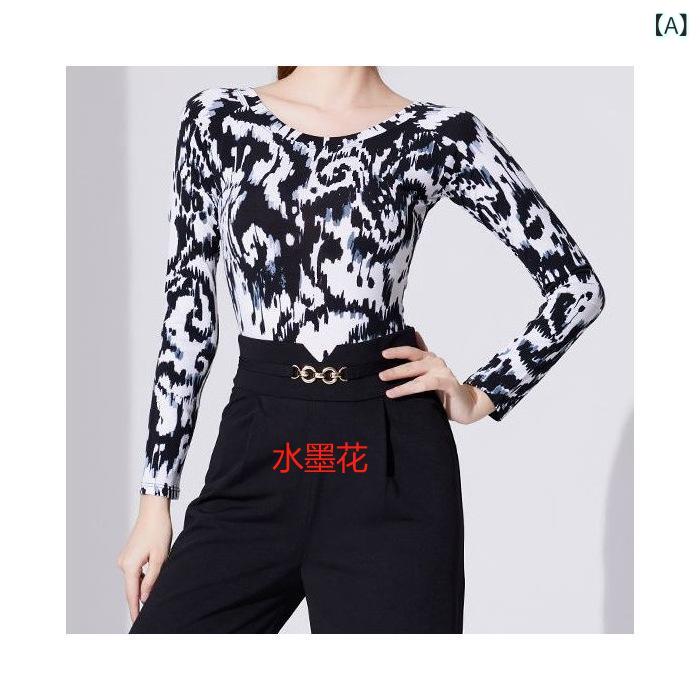商品 ラウンドネック プリント 長袖 Tシャツ 水墨 画 トップ チュール レイヤリング