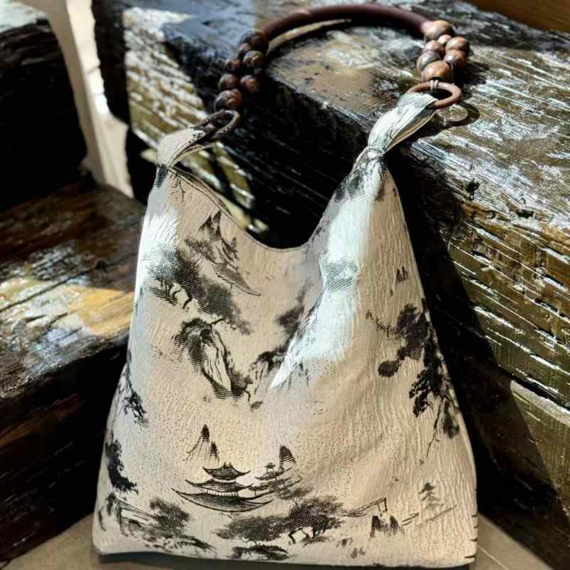 風 アートデザイン ショルダーバッグ ハンドバッグ 縦型 ミディアムサイズ ソフトタイプ デイリーユース さわやか ファスナーポケット スマホポケット