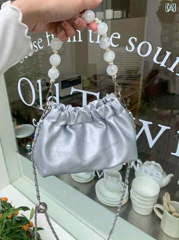 ボディバッグ クロス ポータブル 春夏 クラウド 小さめ チェーン プリーツ チャイナ風