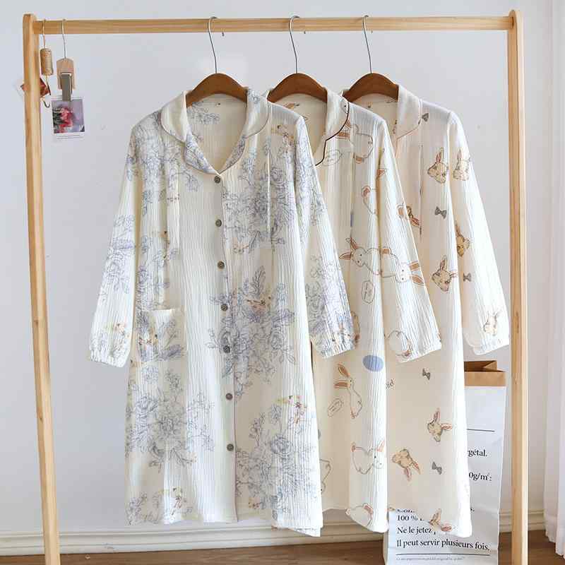 ワンピース レディース 授乳服 春夏 産後 マタニティ コットン ガーゼ 長袖 パジャマ ルームウェア ロング丈 ゆったり