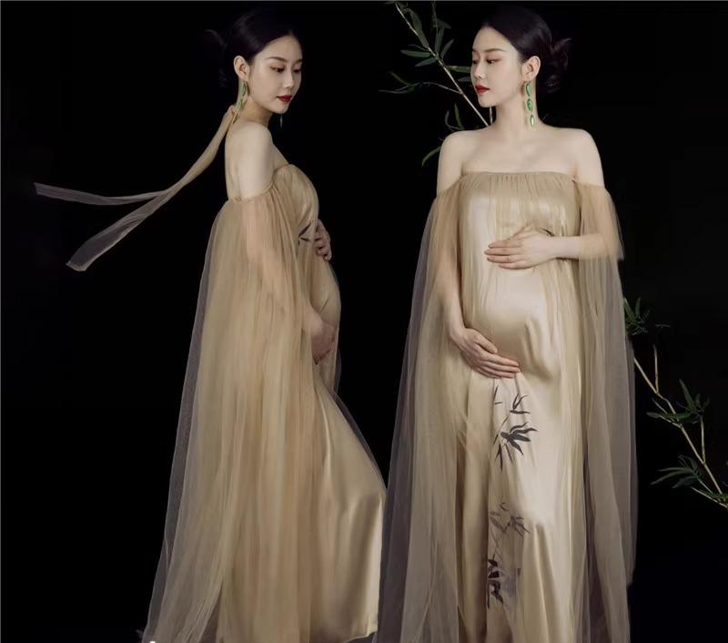 マタニティ ドレス フォト 衣装 おしゃれ スタジオ 妊婦 思い出 記念 写真 チャイナ風 レトロ