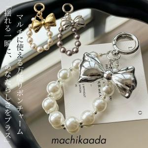 バックチャーム 鞄チャーム キーチャーム キーホルダー スマホストラップ 携帯アクセサリー シルバー チャーム リボン パール 1116