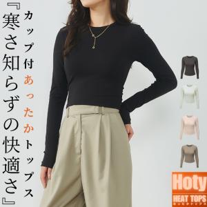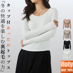 インナー レディース 長袖 発熱インナー 暖かい インナー あったかインナー ヒートテック カップ付き ブラトップ 黒 白 tシャツ 809 hotyクルーネック