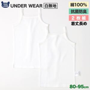 肌着 ベビー キッズ 2枚セット 2枚組 フライス 抗菌防臭 キャミソール ノースリーブ アンダーウェア 女の子 無地 オフホワイト 白 80cm 90cm 95cm キッズ