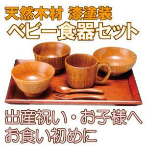 「SGW別送 送料無料」 出産祝い・お食い初め・御子息用に 安全安心の天然木材+漆 ベビー食器7点セット 送料無料+贈り物対応 B食器S