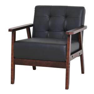 ソファ 一人掛け ブラック 1P 幅64.5cm 木製フレーム 天然木 組み立て式 合成皮革 脚高 19cm ロボット掃除機が入る クロシオ 15413