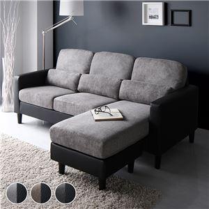 カウチ ソファー セット 〔3人掛け+オットマン グレー×ブラック〕 コンパクト カバーリング ローソファーNK005