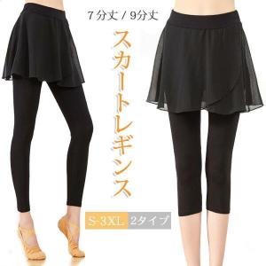 スカートレギンス ダンス パンツ重ね着スカート 体型カバー レディース レギンス スカート ストレッチ 大きいサイズ 7分丈 9分丈 フレア スカート付き