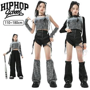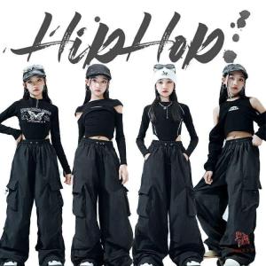 黒系 キッズ ダンス衣装 女の子 トップス 長袖 セットアップ カーゴパンツ ロングパンツ へそ出し 子供服 ヒップホップ ゆったり キッズ ダンス セットアップ