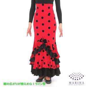 フラメンコ 水玉 斜めフリル ファルダスカート レッド Mサイズ 3047rd