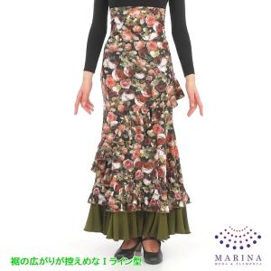 スカート Capricho(カプリチョ) モデル:A5-4 バラ柄 婦人用 サイズ:XS(XP) モスグリーン系[フラメンコ用]
