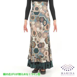 スカート Capricho(カプリチョ) モデル:A5-5 多角形柄 婦人用 サイズ:XS(XP) グリーン×ベージュ系[フラメンコ用]