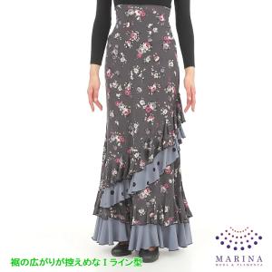 スカート Capricho(カプリチョ) モデル:D5-1 小花柄 婦人用 サイズ:L(G) グレー系×くすみピンク[フラメンコ用]