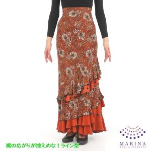 スカート Capricho(カプリチョ) モデル:D5-5 ペーズリー柄 婦人用 サイズ:L(G) 茶×オレンジ系[フラメンコ用]
