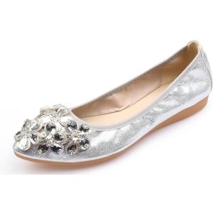 パンプス レディース 歩きやすい 痛くない シューズ 低め 低反発 低い ヒール太め 楽ちん 可愛い( シルバー, 25.5 cm)